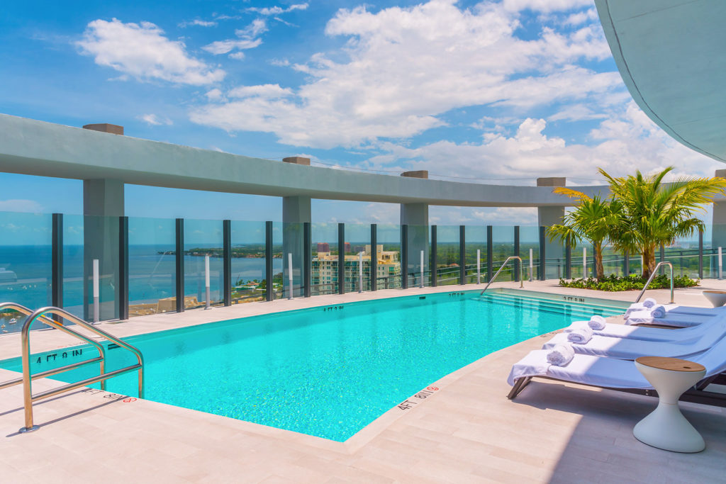 One Park Grove offers a unique perspective from each level. Residents might gaze over leafy treetops to the bay, or be able to see all the way to downtown Miami. The tower is carefully designed to afford dynamic panoramic views of the surrounding landscape. Private balconies and large glass walls provide a sense of connection between the indoors and out, and the ocean becomes the natural backdrop for life.
